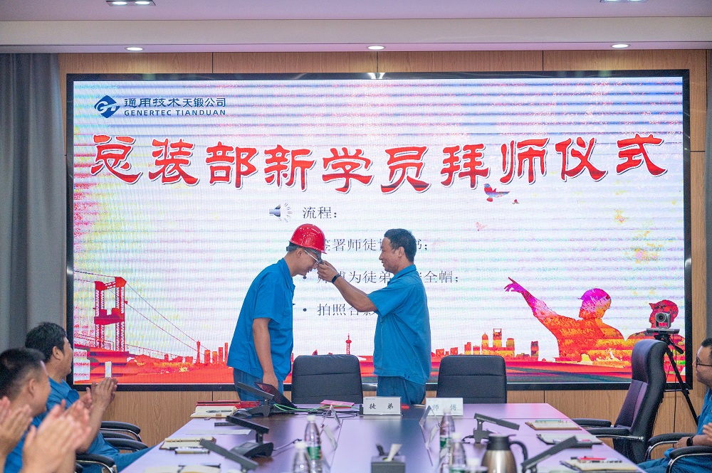支部举行了新员工“拜师”仪式。新学员与导师在《师徒协议书》上郑重签字,徒弟向师傅鞠躬施礼,师傅为徒弟佩戴安全帽并赠言勉励。